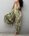 Be the first to review “Printed V Neck Ruffle Hem Sleeveless Tassel Design Casual Loose Midi Dress”